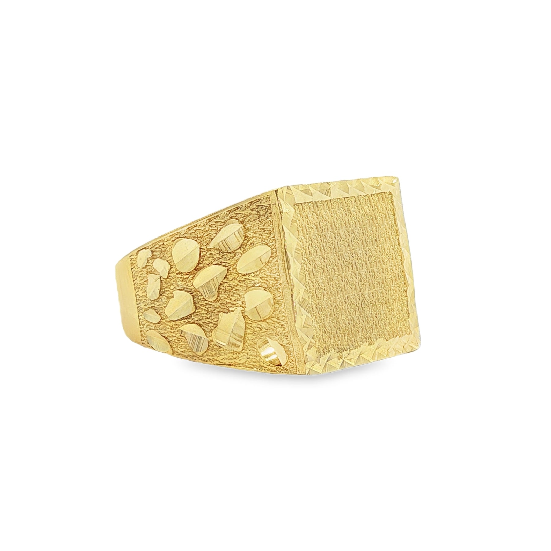 Regular price $874.99Bold and classic, this 10K gold nugget ring features a square top with detailed diamond-cut accents that reflect light for added brilliance. The textured nugget design delivers a strong, timeless look—perfect for everyday wear or as a standout statement piece.