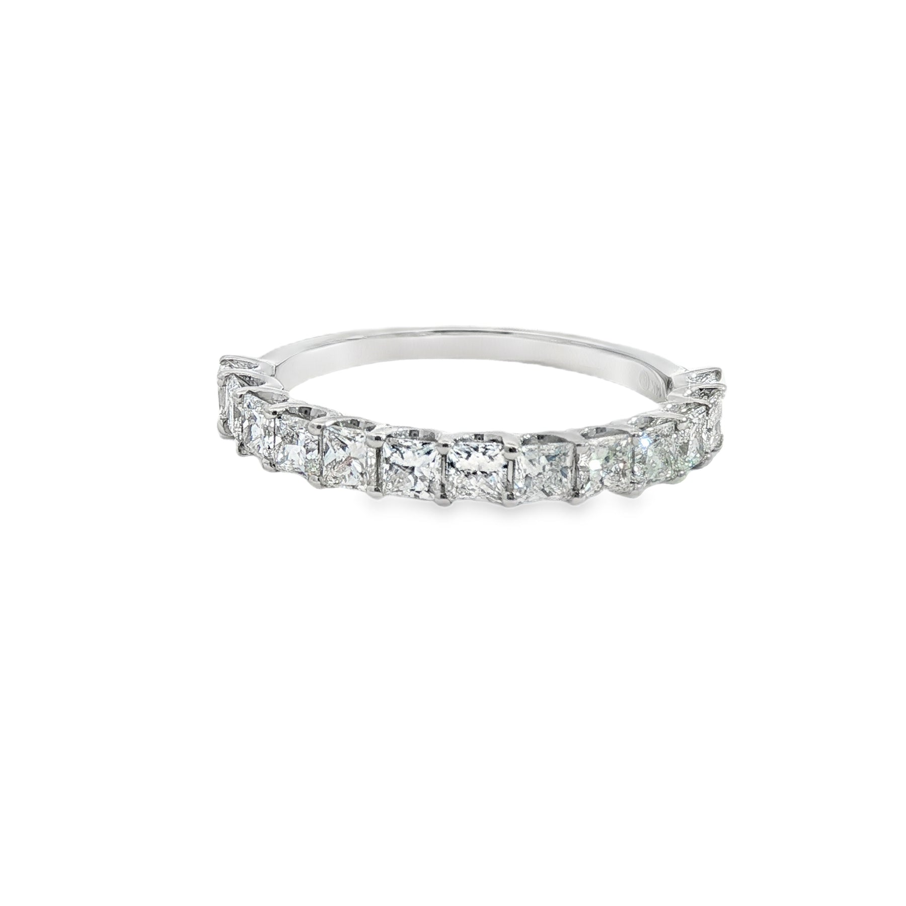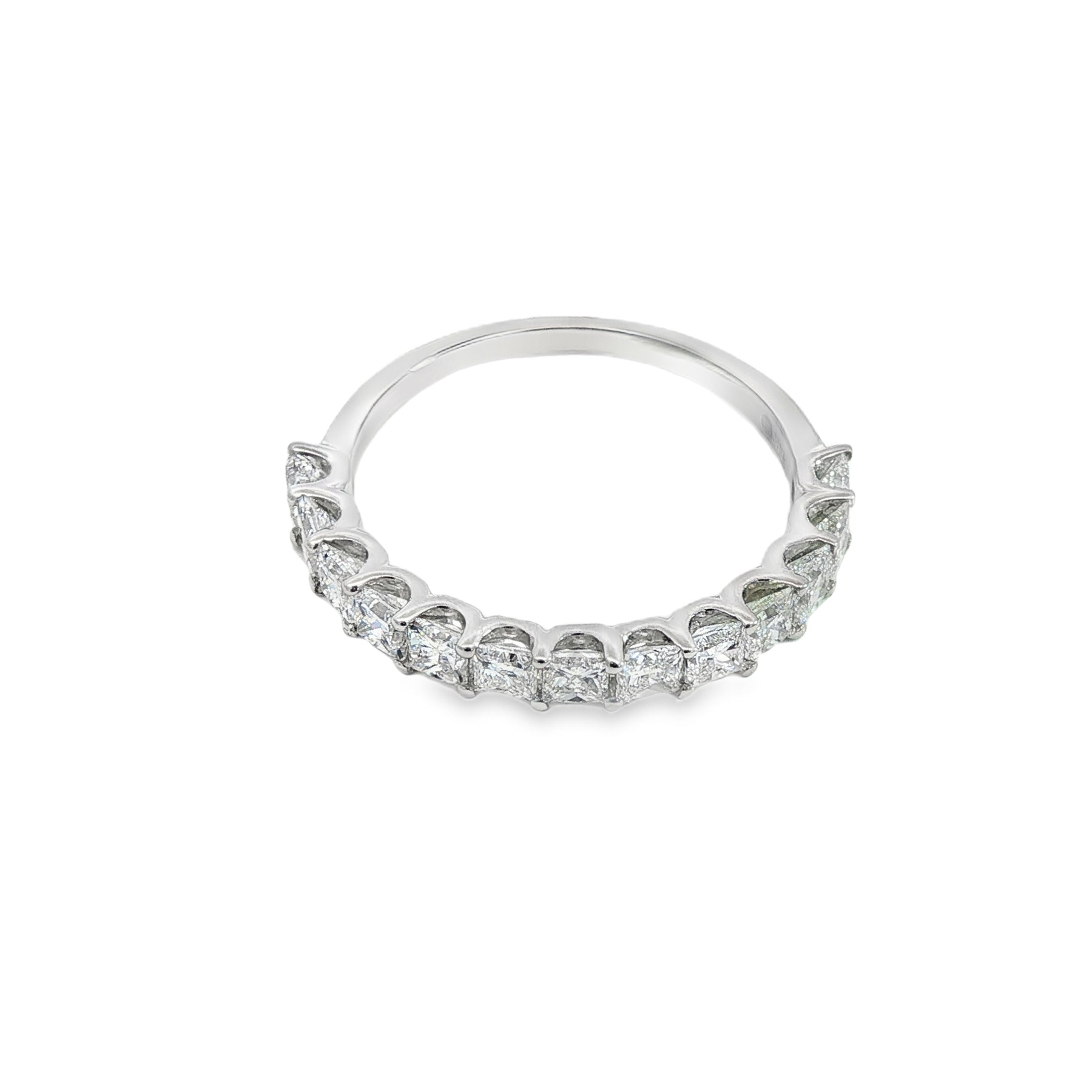 Elegant 14K White Gold Wedding Band featuring 1.32 carats of lab-grown princess-cut diamonds set across the front, beautifully complemented by a smooth, polished plain back for timeless sophistication.