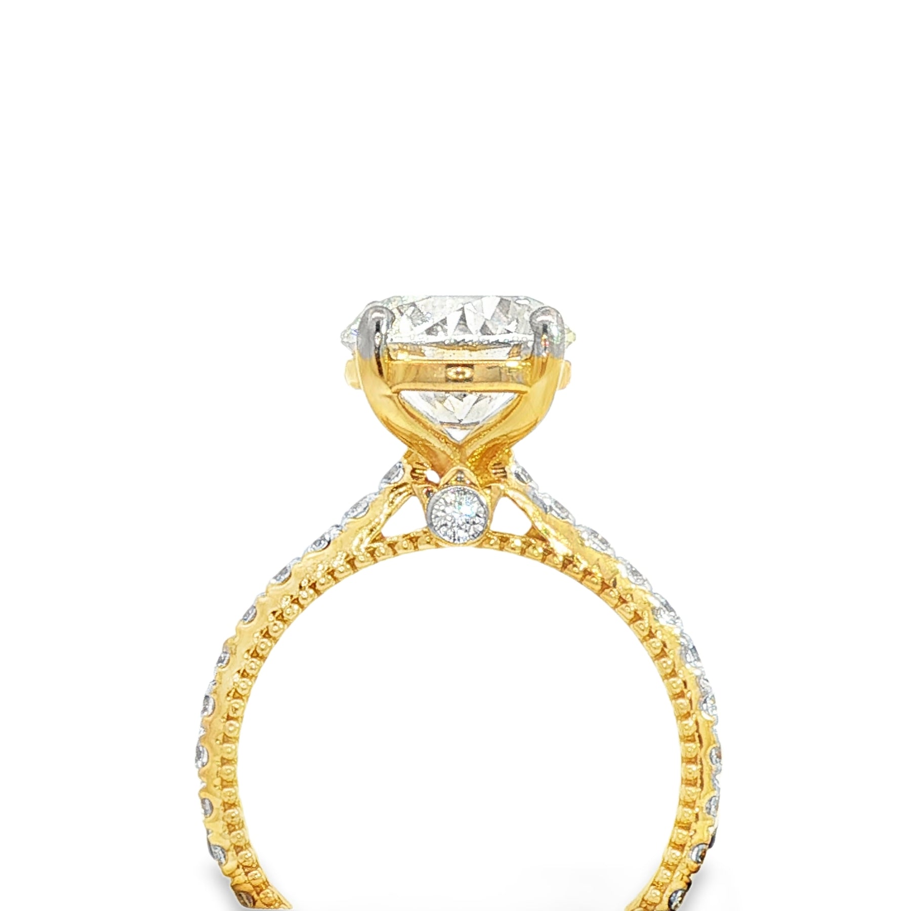 Regular price $2,749.9914K yellow gold, this stunning 3.76ct ring features a round lab-grown diamond at the center, accented by a hidden diamond beneath the setting. The band is adorned with 27 lab-grown diamonds in a pavé style, offering brilliance from every angle. A perfect blend of elegance and sustainable luxury.