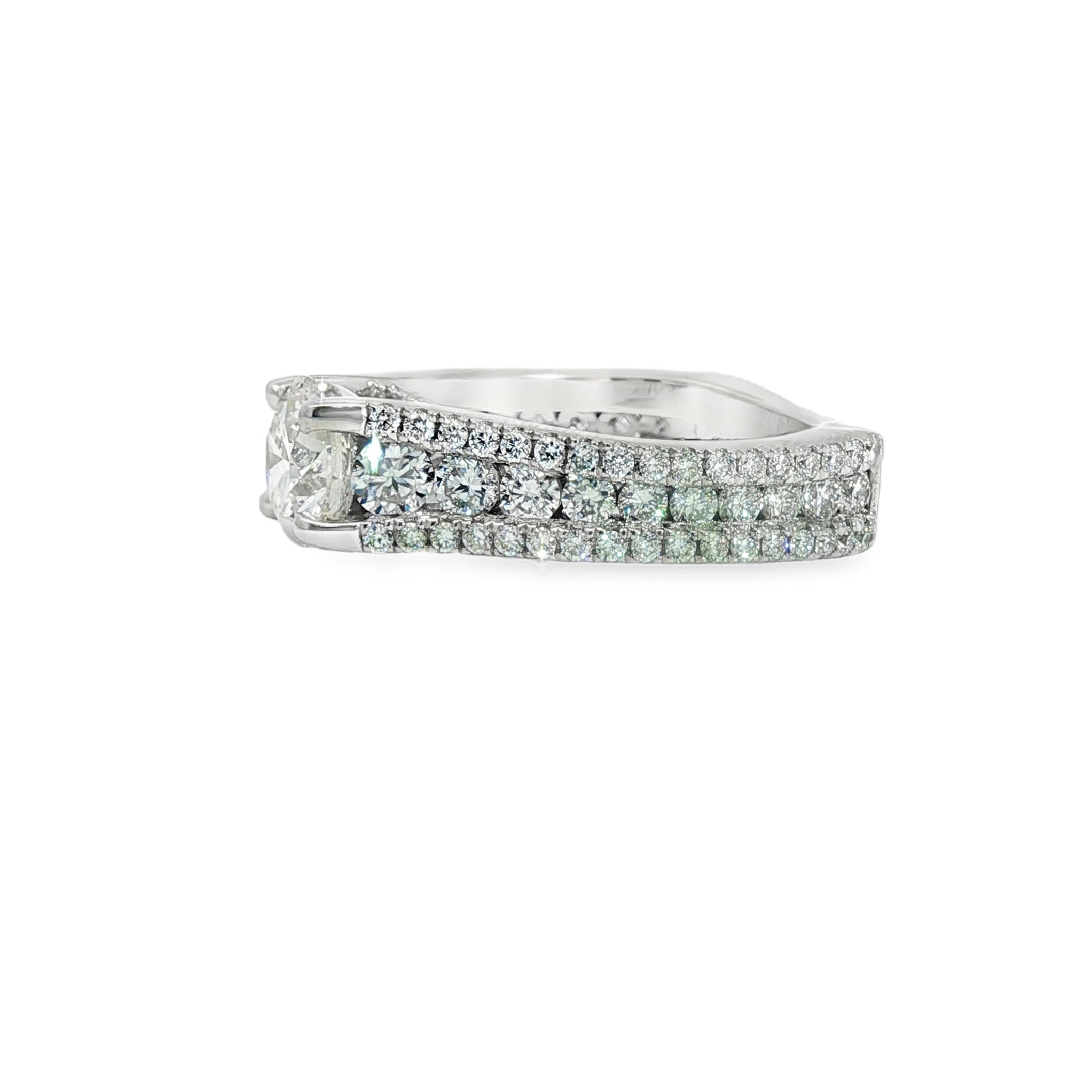 Regular price $2,699.99This stunning 14K white gold engagement ring features a breathtaking 1.51-carat round lab-grown diamond at its center, complemented by an additional 3.39 carats of sparkling round lab-grown diamonds along the sides. A brilliant fusion of timeless elegance and modern craftsmanship
